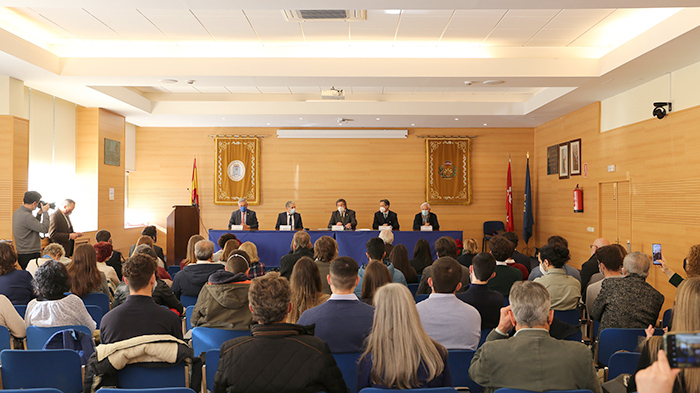 El director de la ETSIAAB, José Manuel Palacios, estuvo acompañado en la mesa presidencial por su homólogo en la Escuela Técnica Superior de Ingeniería de Montes, Forestal y del Medio Natural (ETSIMFMN), Luis García Esteban. También formó parte de ella el presidente de Fertiberia, Javier Goñi, así como el subdirector de innovación y desarrollo de servicios del grupo Tragsa, Valentín Gómez Mampaso. La Promoción 112 de Ingenieros Agrónomos estuvo representada por Francisco Montero.