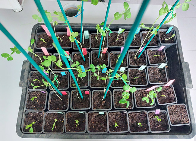 Distintas variedades de semillas de guisantes que se expondrán en el hall del edificio Agrónomos.