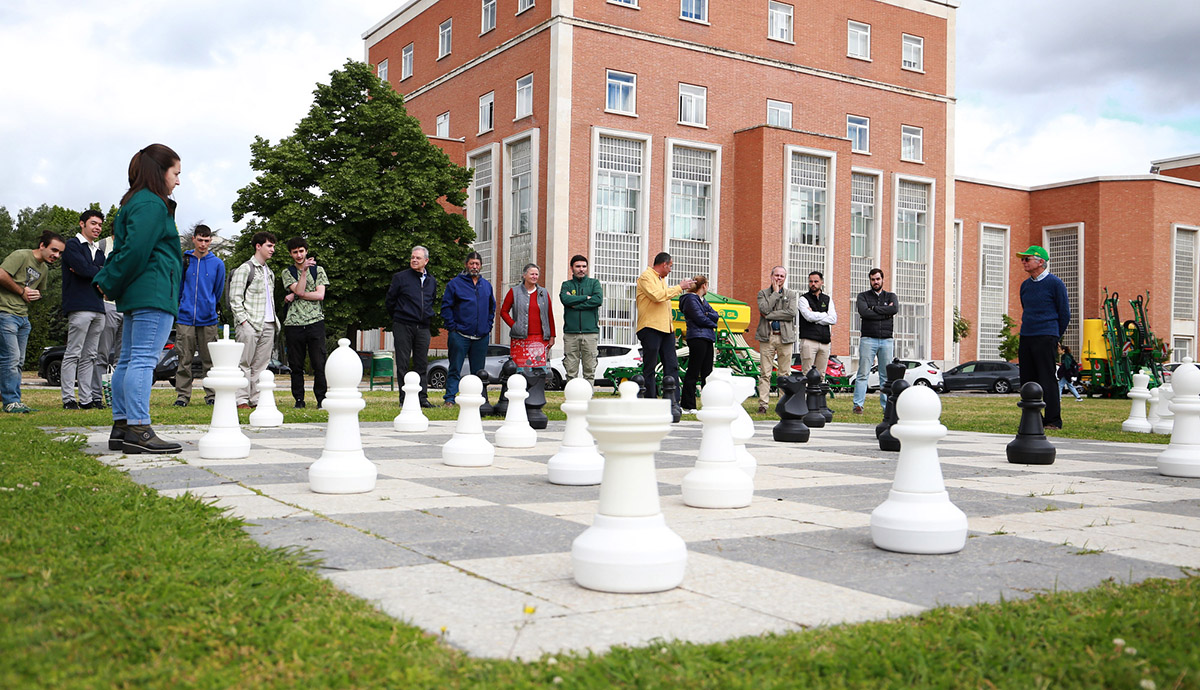 Por último, la conmemoración de San Isidro marca este año en rojo en el calendario el 14 de mayo, día grande de las fiestas que, como ya es tradición, arrancará en el tablero del estanque donde los profesores José Luis García y Jacinto Gil retarán a la comunidad universitaria a participar en una gran partida de ajedrez. Para tomar fuerzas, nada mejor que un castizo desayuno de chocolate con churros, al que está invitado el estudiantado y personal de la ETSIAAB, y que comenzará a las 11:30. Una vez desayunados y cargados de energía, llegará el turno del reconocimiento a las empresas que han participado en la exposición de maquinaria agrícola y la entrega de premios de San Isidro 2025, a cargo del director de la ETSIAAB, José Manuel Palacios. A las 12:30 darán comienzo los juegos populares.