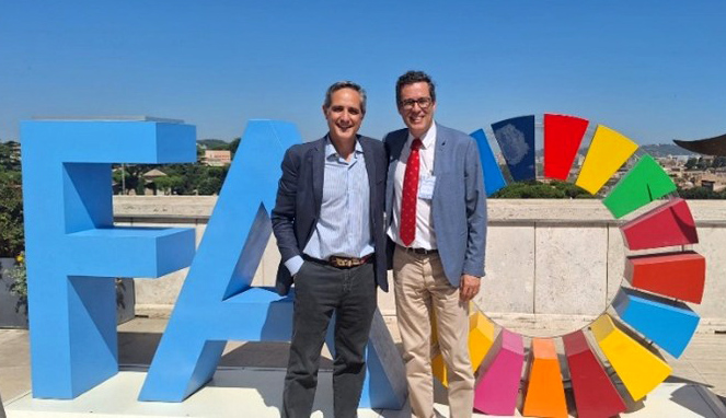 El secretario académico de la ETSIAAB, prof. José Luis Yagüe, mantuvo el 18 de junio una reunión en la sede central de FAO en Roma con algunos de los responsables del World Food Forum (WWF).